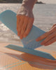 Blue fin for paddleboard with a sleek design and attachment mechanism on a light background